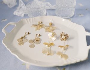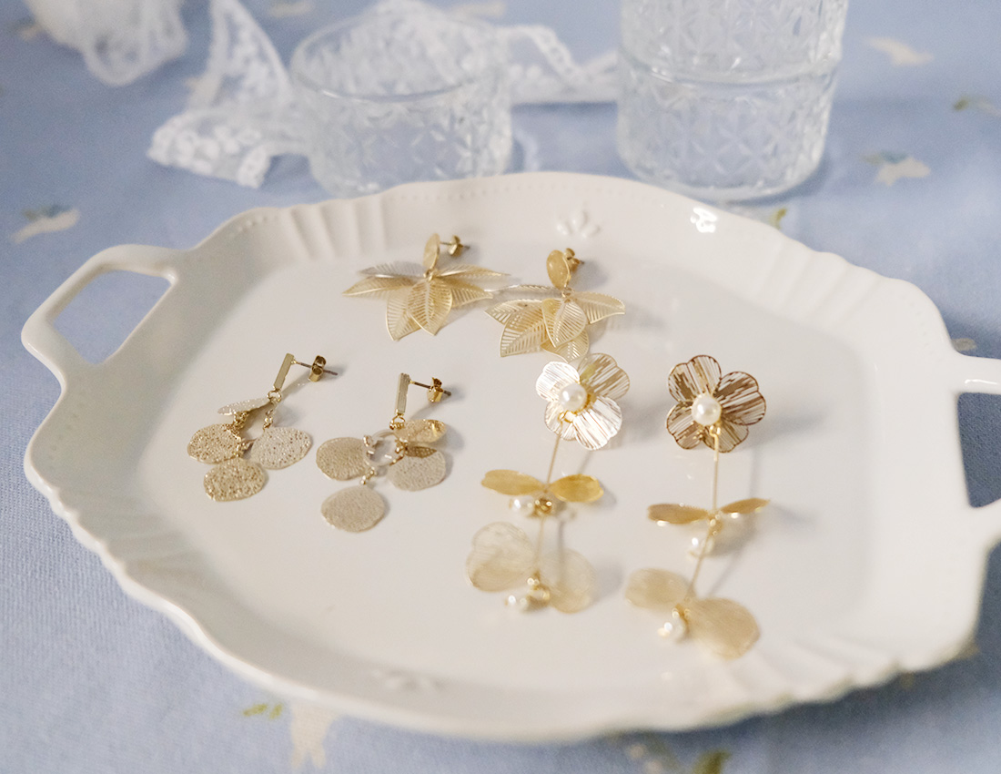 ホワイトを基調にしたピアスやイヤリング。