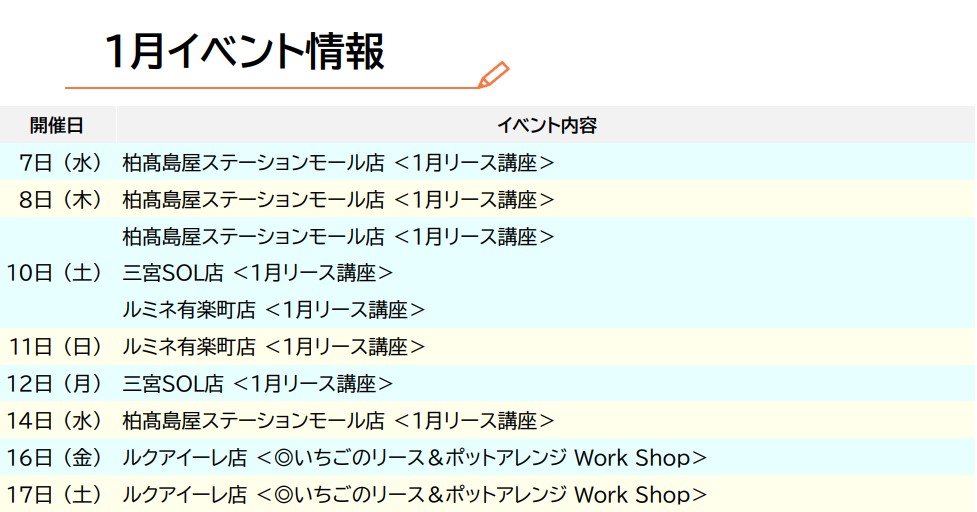 1月イベント情報のご案内