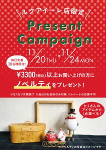 ¥3300(税込)以上お買い上げで”選べる”ノベルティをおひとつプレゼント!